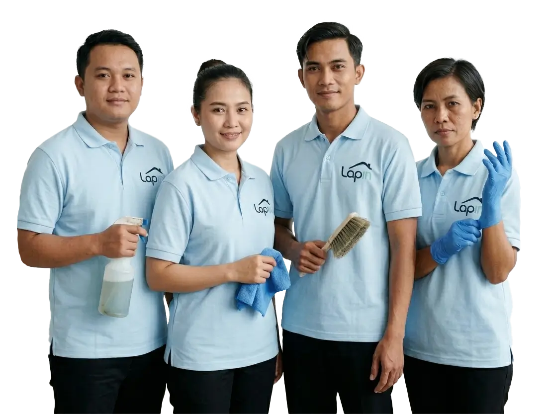 Cleaner berpengalaman, datang tepat waktu, dan membawa alat & cairan sendiri. Siap membantu rumah, apartemen, dan kantor Anda.